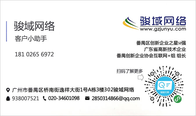 廣州駿域網(wǎng)絡(luò)科技有限公司成立于2005年,是一支由眾多具有多年實踐經(jīng)驗的專業(yè)人士組成的高新技術(shù)團(tuán)隊,專為企業(yè)提供網(wǎng)站建設(shè)、全網(wǎng)營銷、郵箱等服務(wù),我們擁有嚴(yán)謹(jǐn)?shù)某绦蜷_發(fā)人員、專業(yè)的美工設(shè)計、隨時為您效勞的售后服務(wù)人員,團(tuán)隊人數(shù)達(dá)一百多人。目前我們已經(jīng)榮幸的為廣州眾多知名企業(yè)提供了包括網(wǎng)站建設(shè)、手機(jī)網(wǎng)站、小程序、企業(yè)軟件開發(fā)等多種基于互聯(lián)網(wǎng)技術(shù)的服務(wù)。 通過長期積累,駿域網(wǎng)絡(luò)目前已經(jīng)擁有50000多家客戶。